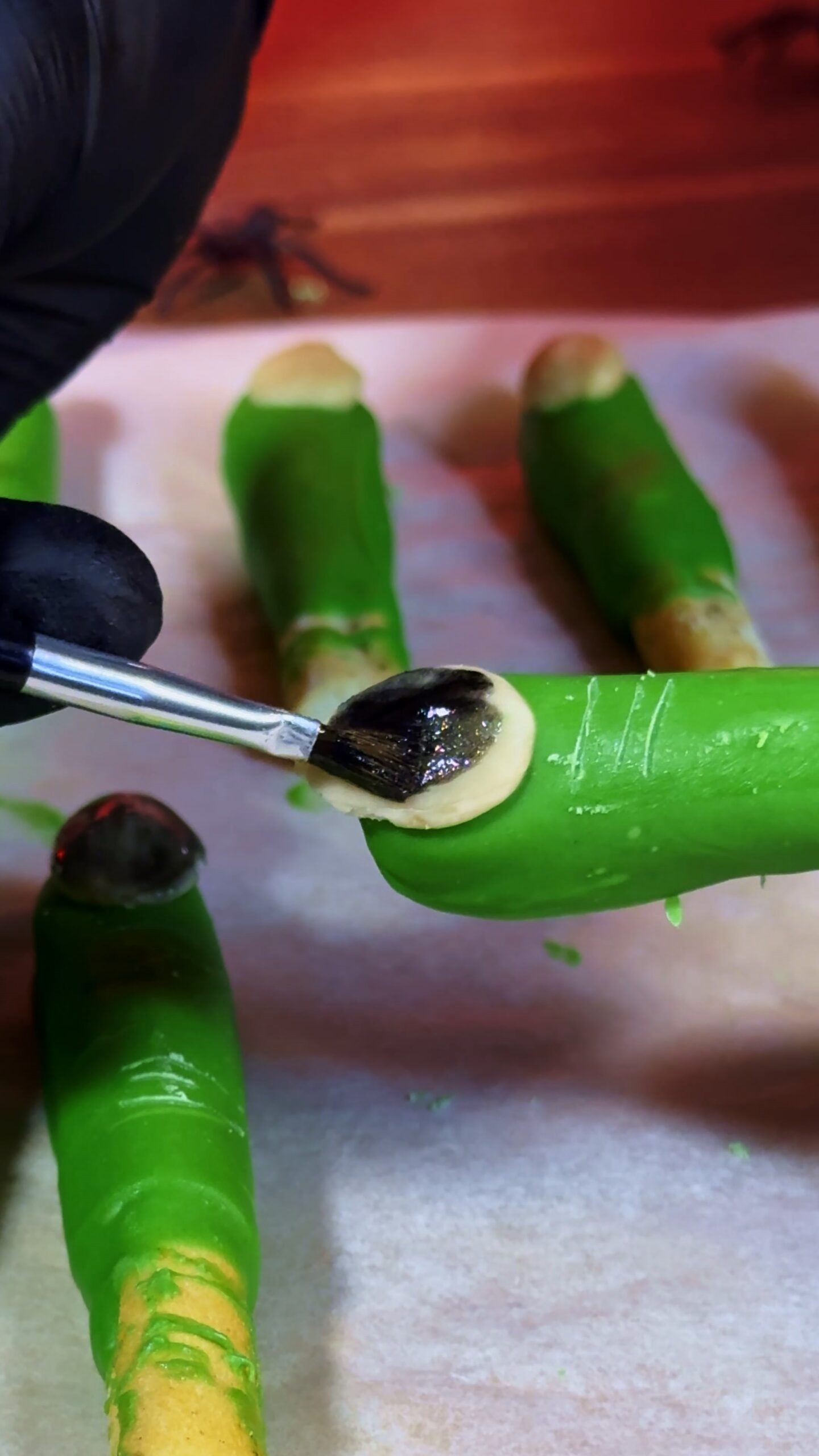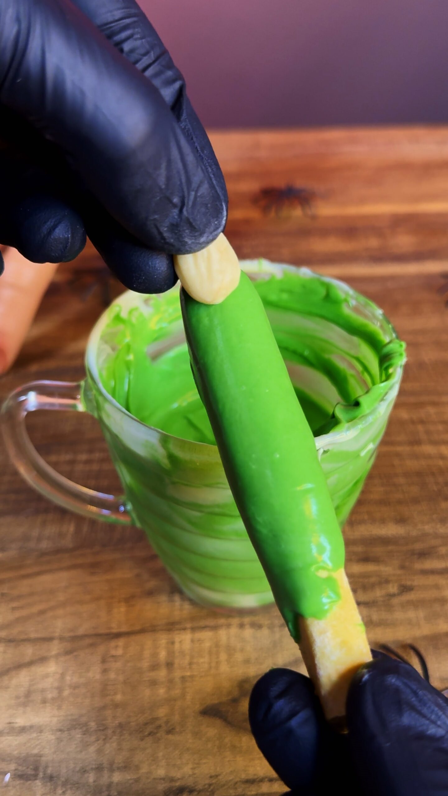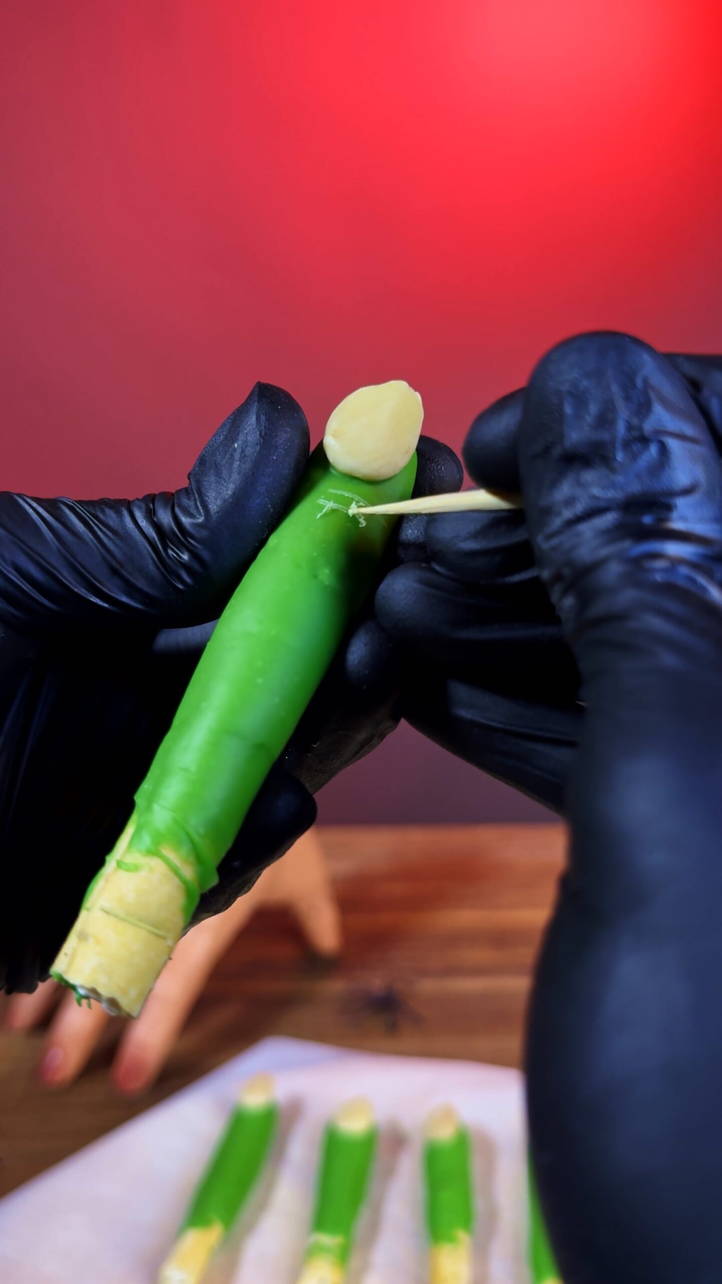Sei pronto a servire lo snack più disgustosamente delizioso della stagione? Queste non sono semplici merende: sono vere e proprie “Dita da Strega”, le più spaventose da sgranocchiare ad Halloween! Immagina una base croccante di grissino ricoperta da uno strato di cioccolato verde spettrale e coronata da una realistica “unghia” di mandorla, magari con la buccia per un effetto ancora più vero. Ma il tocco finale è lo smalto nero dolce che rende il tutto incredibilmente macabro. È la ricetta perfetta per stupire gli amici con un risultato mostruoso a cui è impossibile resistere.