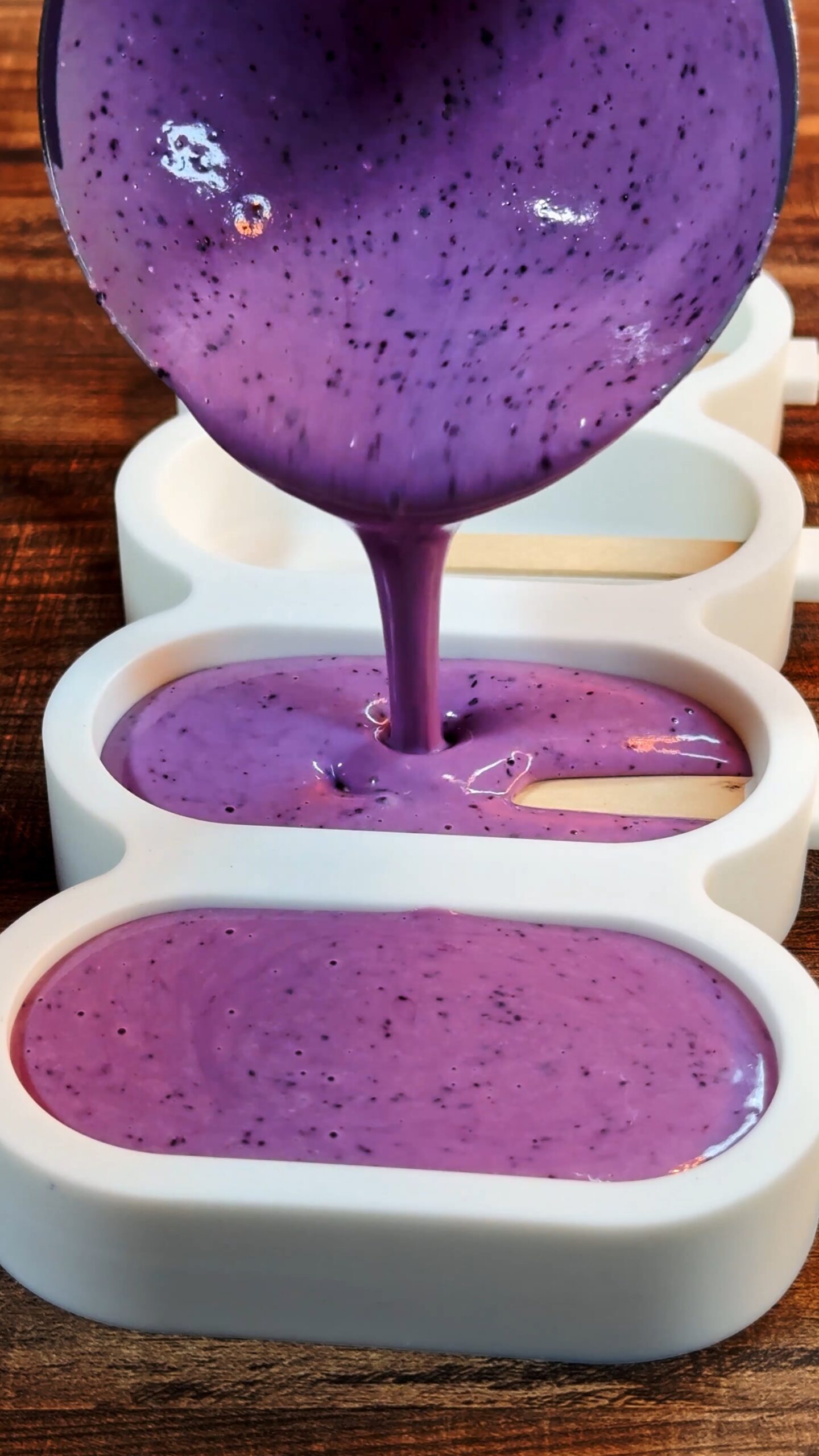 Step 1 In un frullatore unisci i mirtilli, gli anacardi (ammollati se possibile), lo yogurt magro, lo sciroppo d’acero e qualche goccia di essenza di vaniglia. Step 2 Frulla fino ad ottenere un composto liscio e cremoso. Step 3 Inserisci i bastoncini negli stampi.